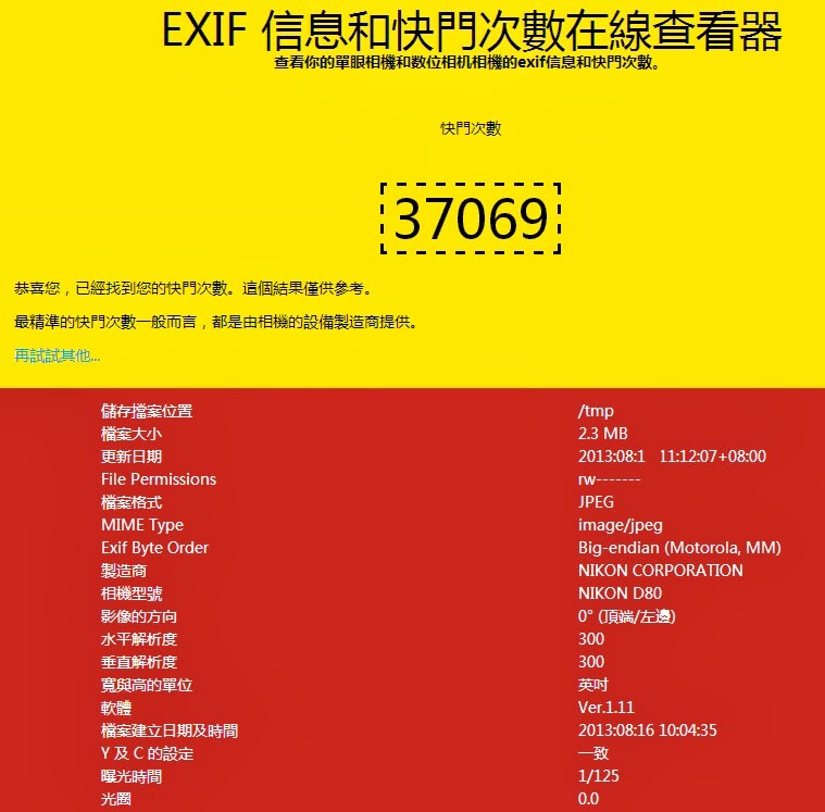 最近單眼修好想再確認目前的快門使用次數,每次用的電腦都不一樣,搞得每次都要上網去抓軟體來看,有時候在公司又不一定能下載這類的軟體,好在有好心人將這類的軟體轉成網