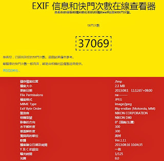 2.經過幾分鐘的等待,就會出現下圖的訊息,網頁上也是會出相當完整的訊息,完全不輸EXIF這一類的軟體,而且方便性也相當的高